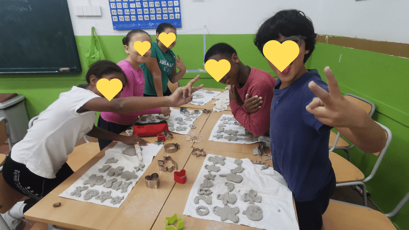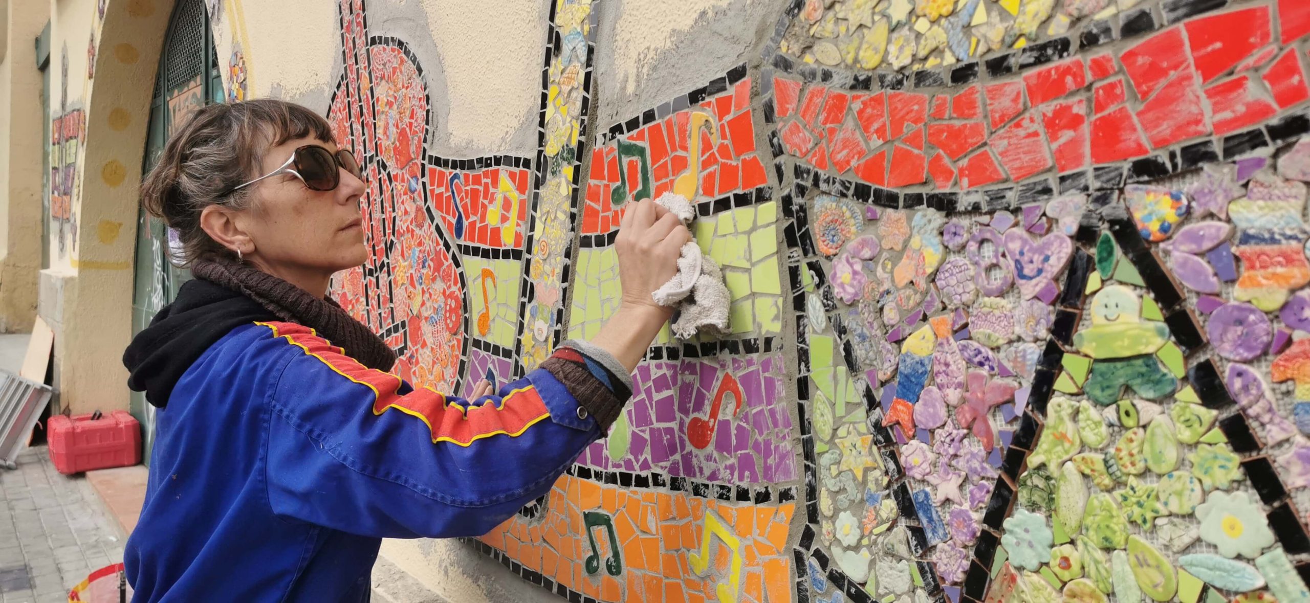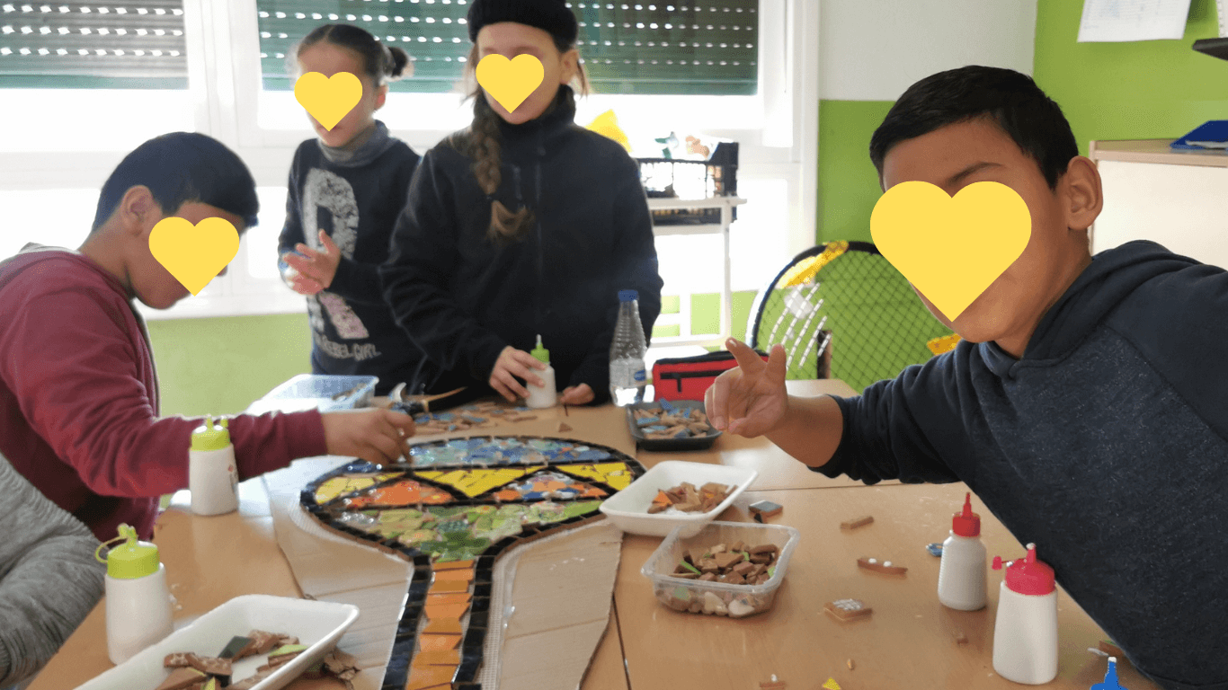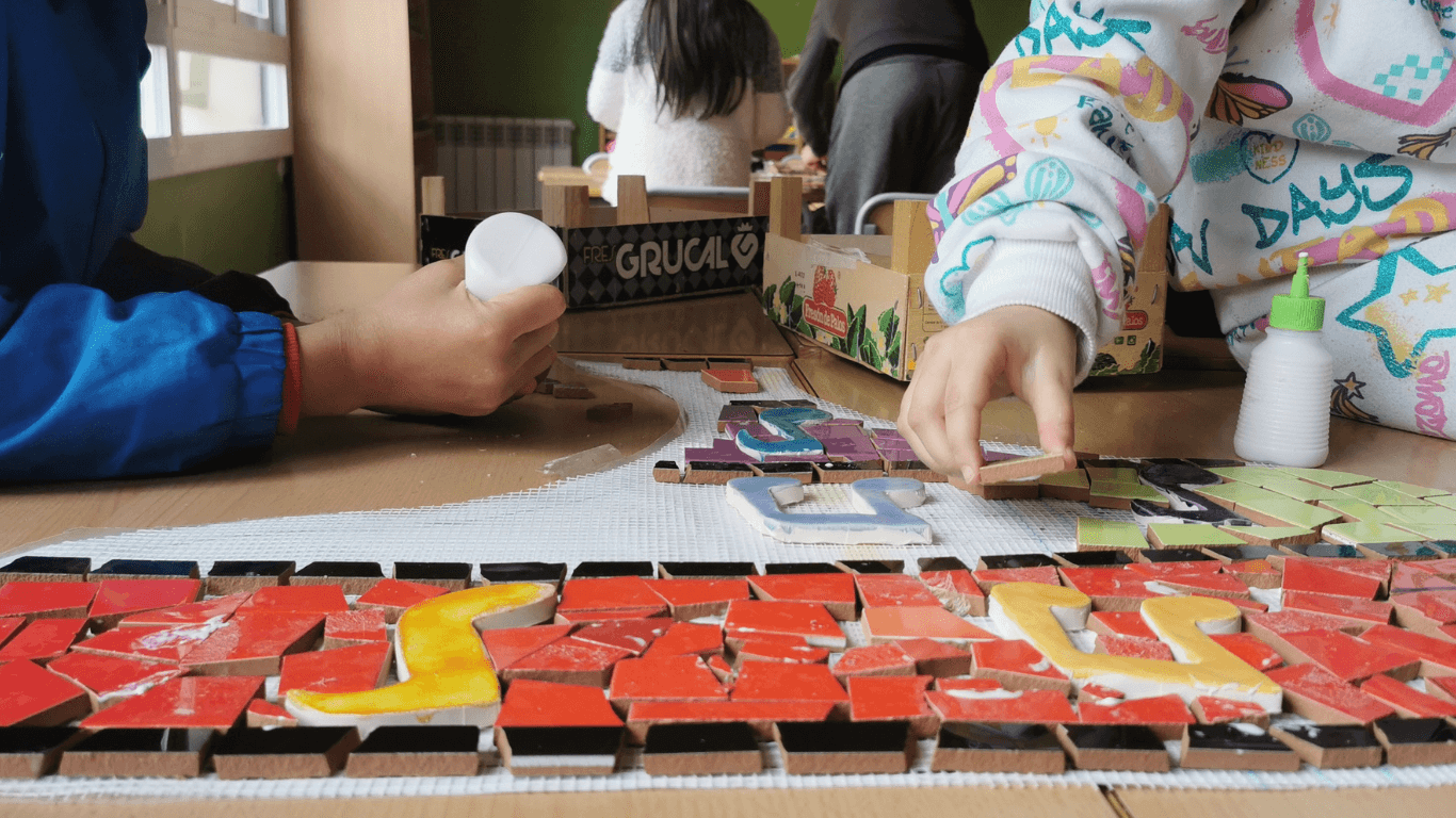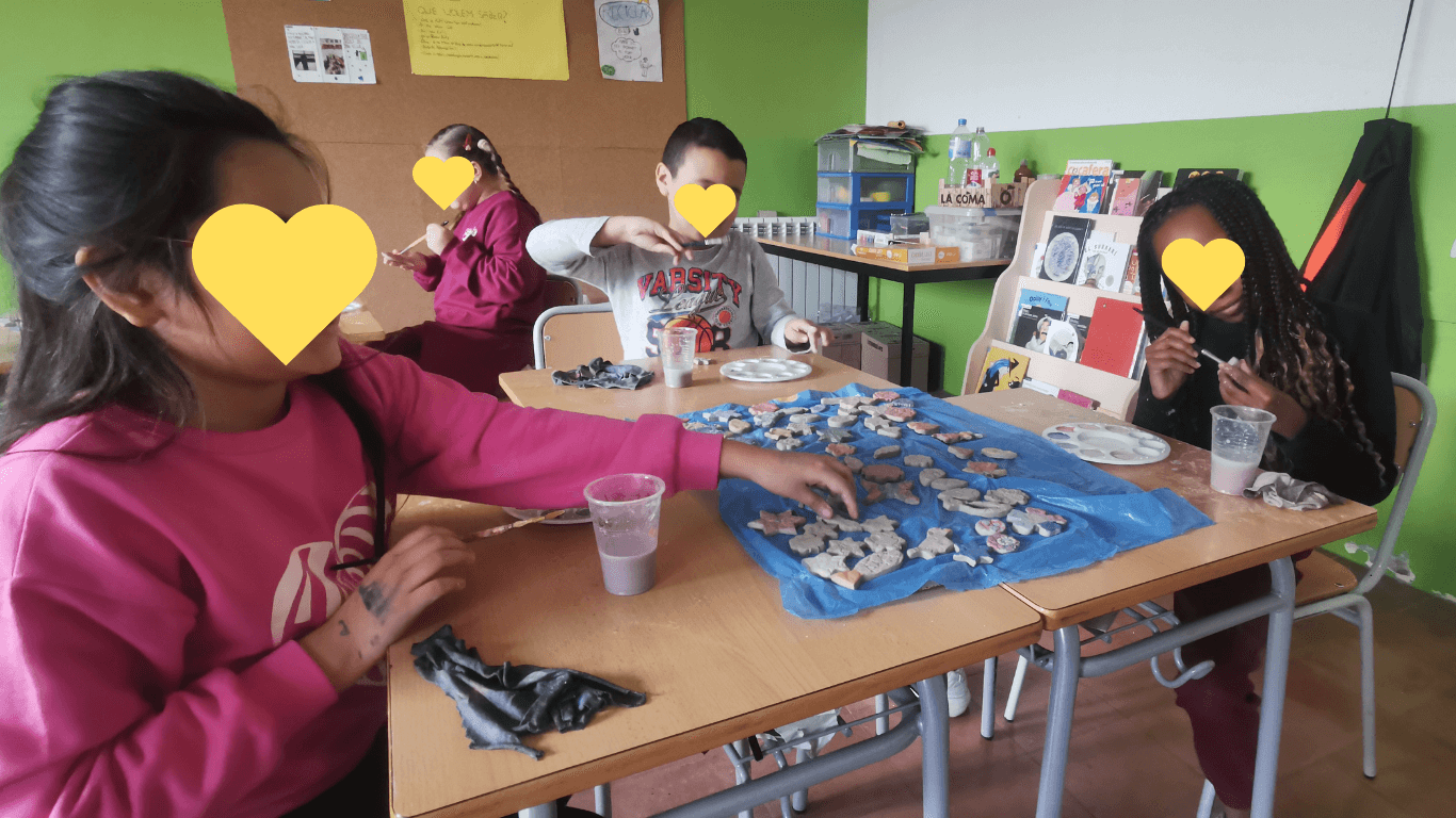 Los niños y niñas del Cicle Mitjà participaron en talleres de cerámica, donde crearon piezas que, posteriormente, se utilizaron para la realización del mosaico. Esta iniciativa permitió a los alumnos aprender la técnica de la cerámica y el mosaico, a la vez que contribuyen a embellecer su barrio.