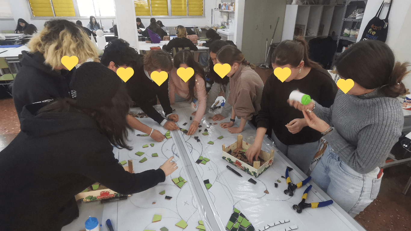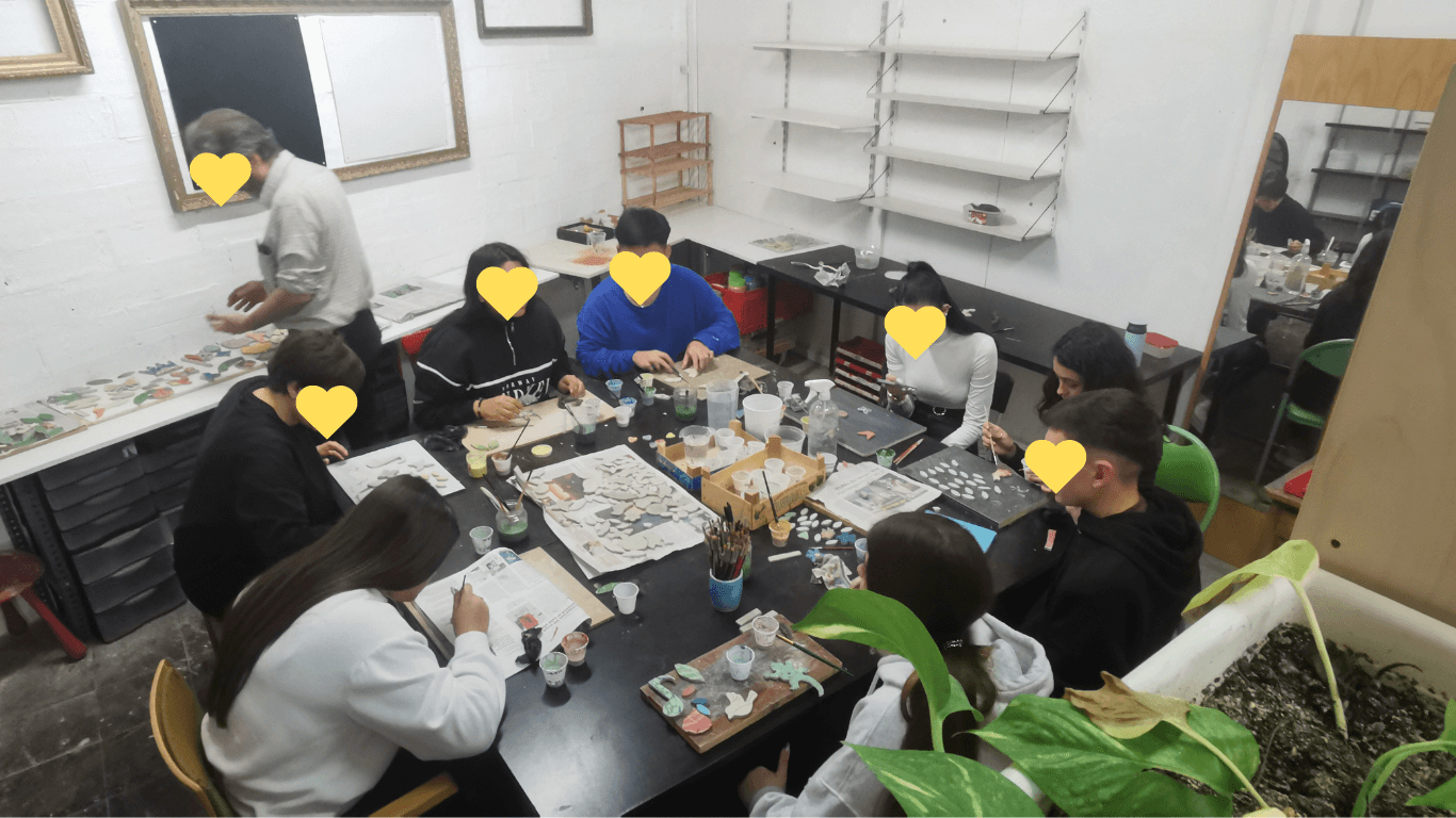 Unos 30 estudiantes aprendieron la técnica de la cerámica y el mosaico, explorando sus posibilidades como técnica artística y experimentando con la interacción entre el arte y el entorno.