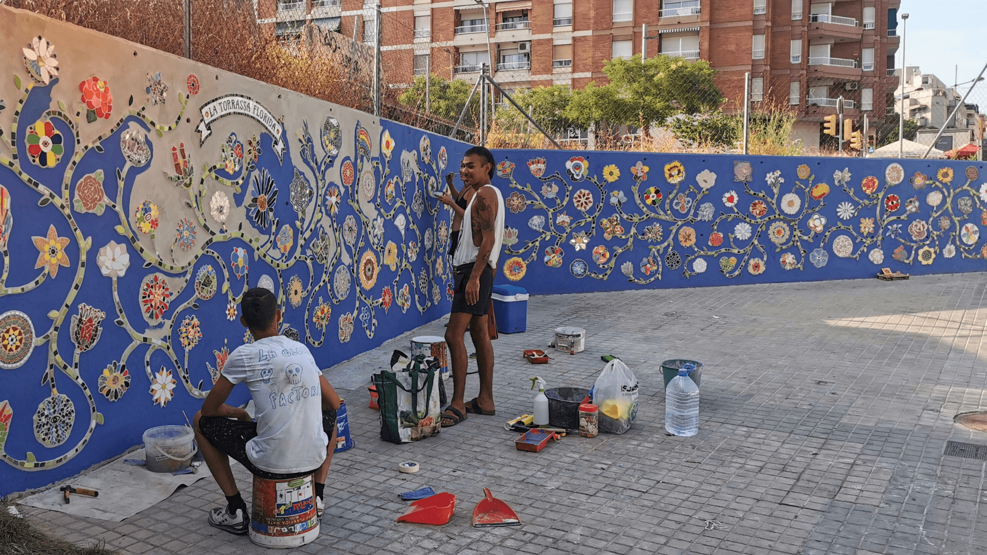«La Torrassa Florida» es un mural de mosaico comunitario que revitaliza el espacio público en el límite de los barrios de La Torrassa y La Florida en L’Hospitalet de Llobregat. Este proyecto participativo involucró a vecinos, estudiantes y artistas internacionales en la creación de una obra que celebra la diversidad y el sentido de comunidad.