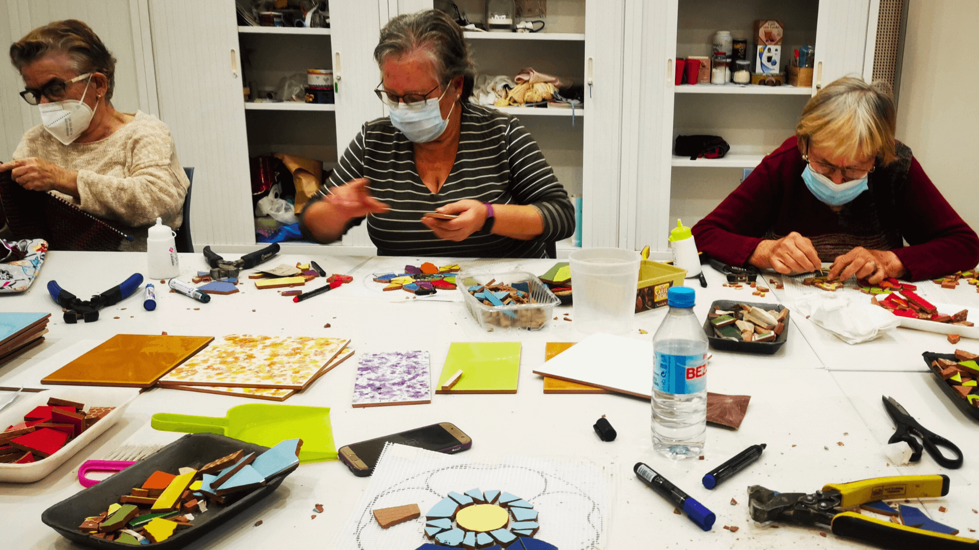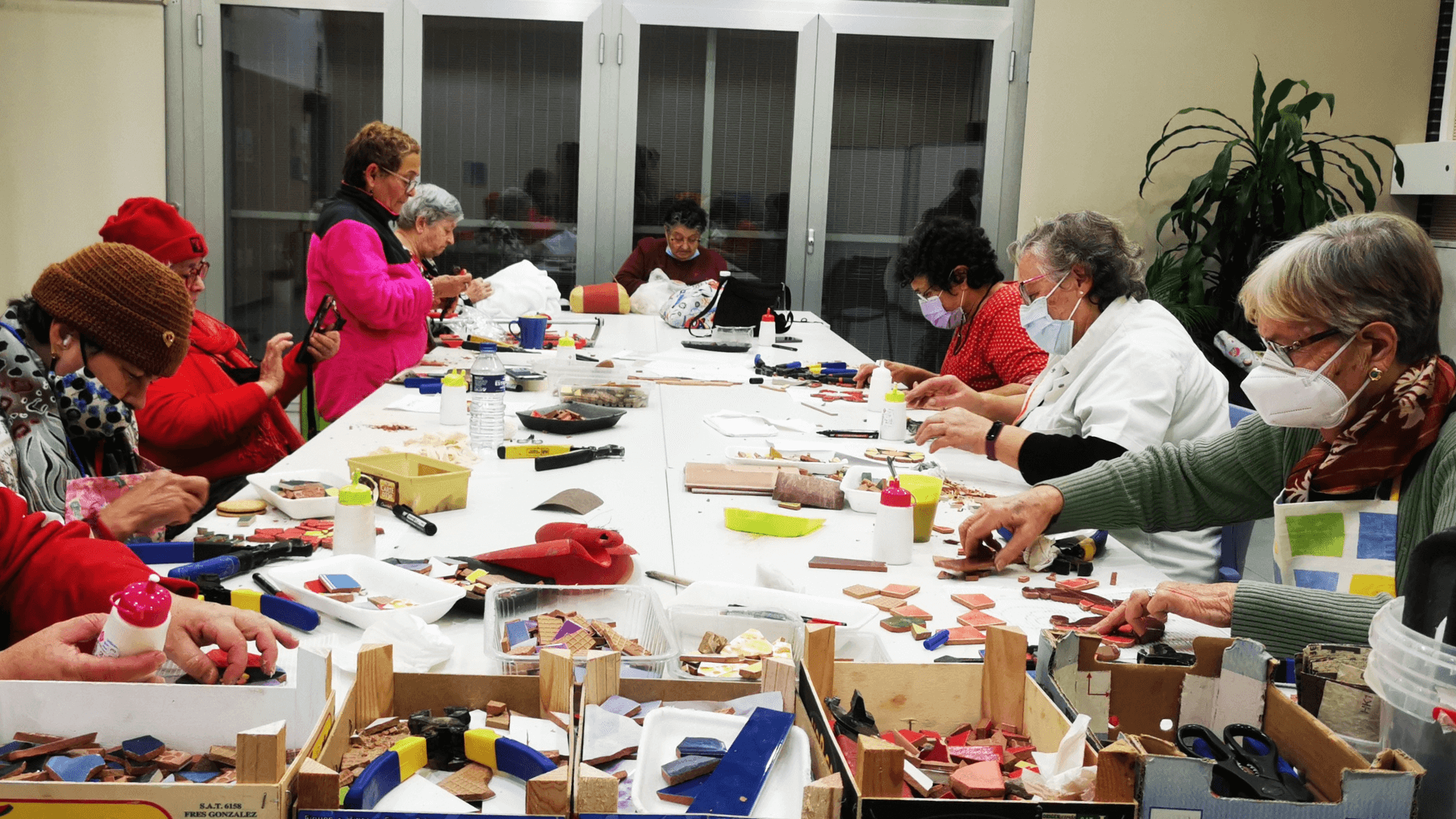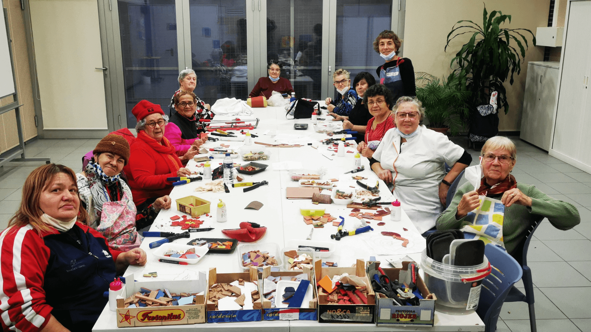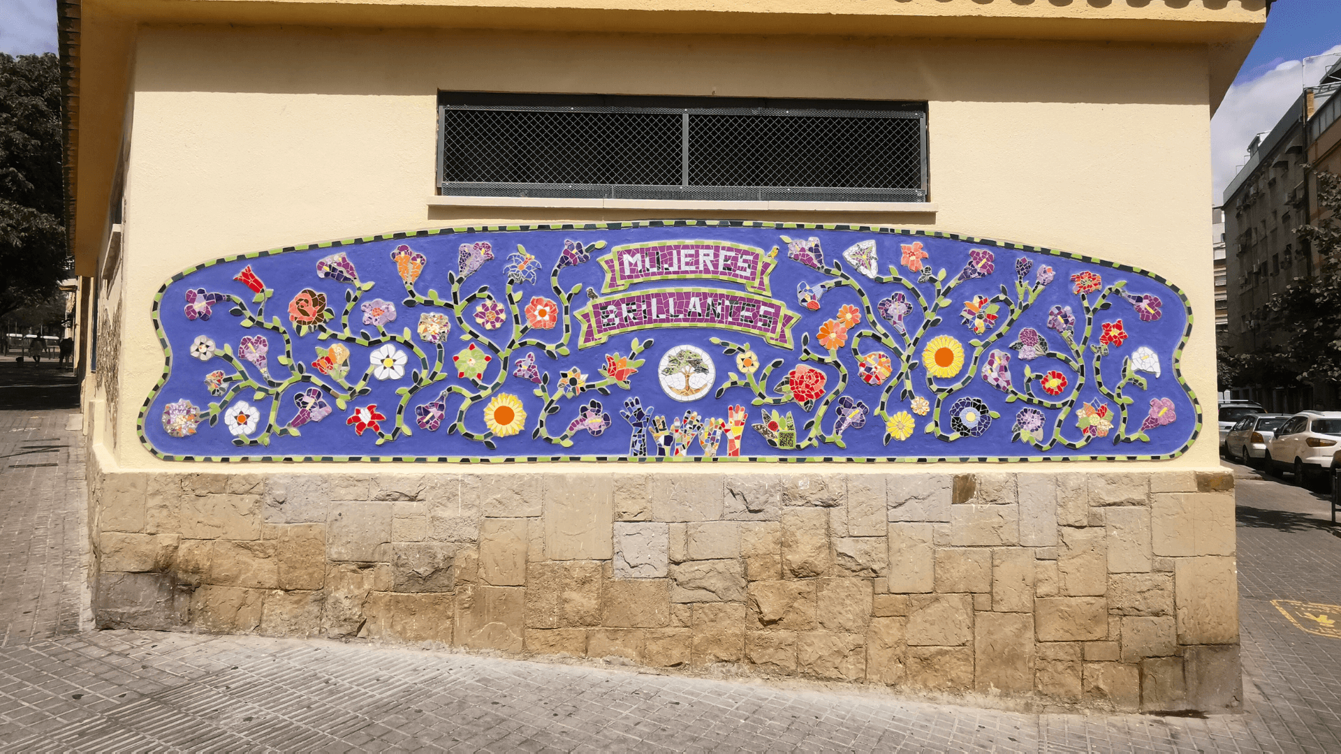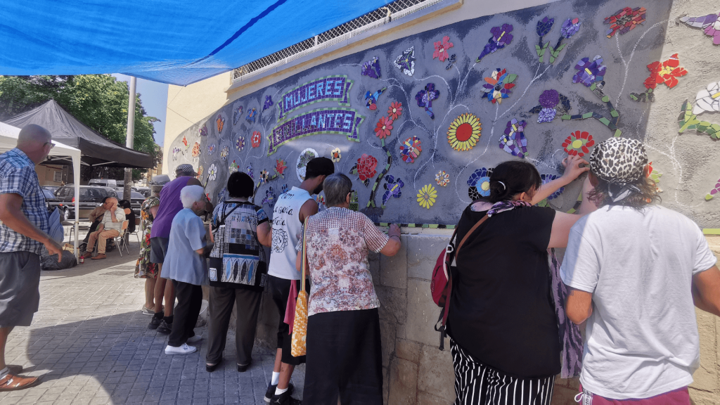 El colectivo «Mujeres Brillantes»,está formado por mujeres implicadas con su barrio y con un espíritu creativo e inquieto. Habitualmente se reúnen en el Centro Municipal Ana Díaz Rico para hacer talleres de manualidades, pero en esta ocasión, guiadas por La Gloria Factoría de Arte, aprendieron la técnica del mosaico trencadís y plasmaron su talento en una obra colectiva.