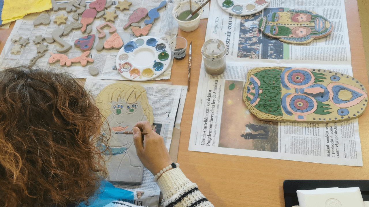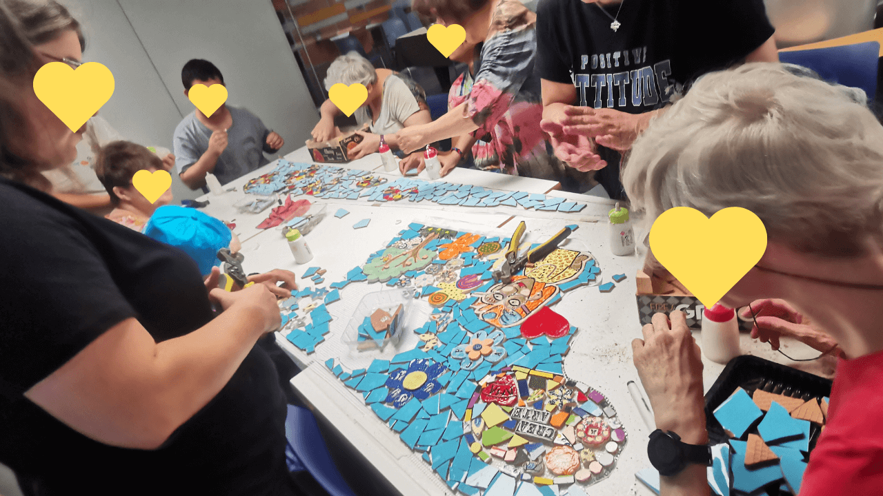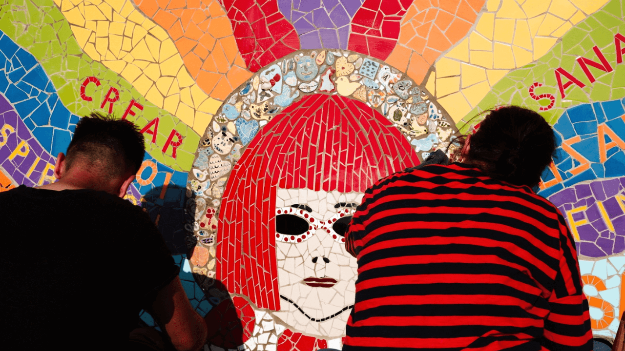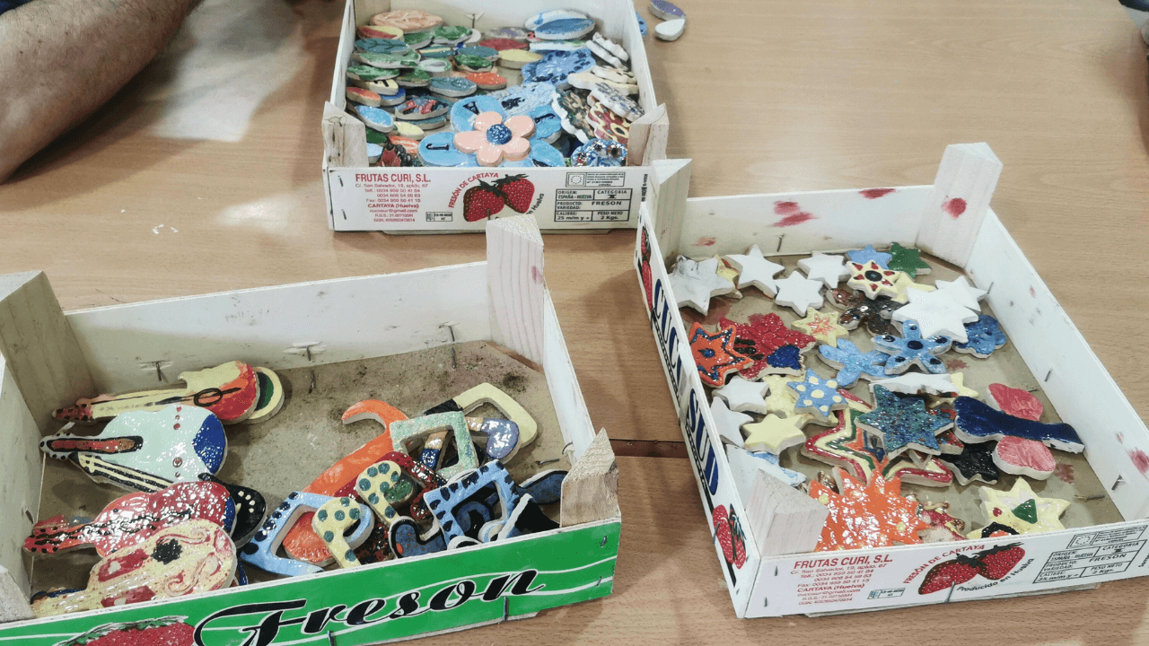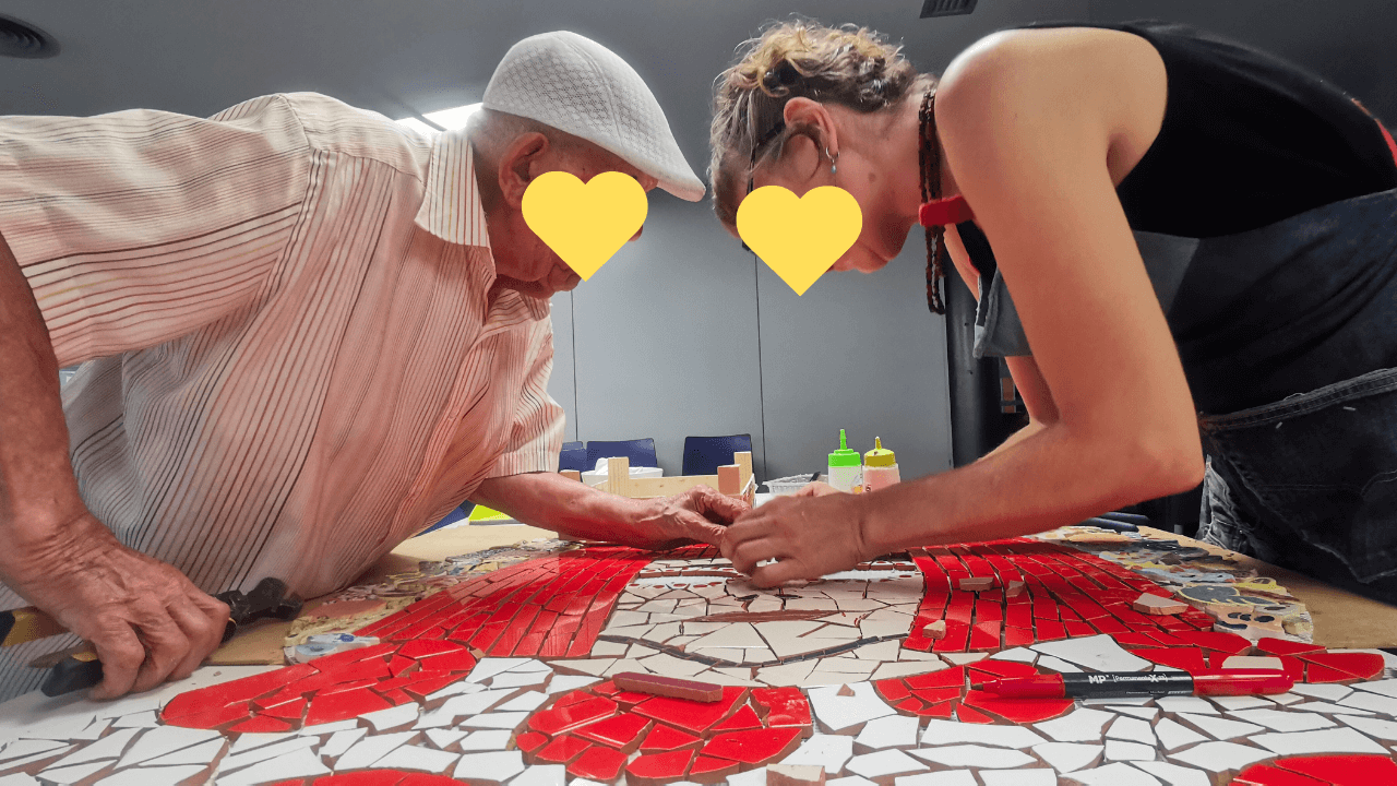 Durante varias sesiones, los participantes aprendieron la técnica de la cerámica y el trencadís, contribuyendo a la elaboración de este mural que embellece el parque y fortalece el sentido de comunidad.
